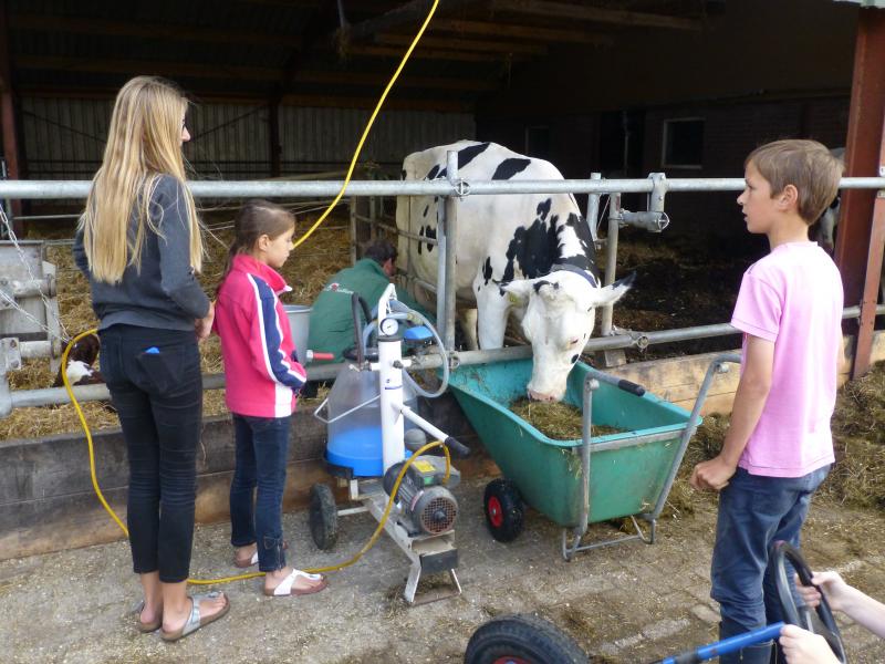 Het helpen op de boerderij b.v. het melken, het meerijden op de tractor en het meemaken wat er allemaal op de boerderij gebeurd vonden de kids en wij natuurlijk ook erg leuk. De kids mochten mee met Berend naar springles en de hoefsmid. Ze vertellen aan iedereen hoe hoog het paard wel niet kan springen. Ook de kippenschuur was interessant,we weten nu dat we toch beter de eieren van een "binnen"-scharrelkip kunnen kopen.